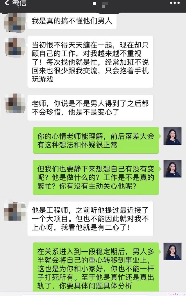 每一个人都希望家庭美满幸福,夫妻只有和睦相处,家庭才能美满幸福,特别是现在的年轻夫妻,互相脾气都很固执,有时候因为一点家庭琐事,就吵架,不管是谁的错,谁都不愿意主动理对方,如果脾气不改,很影响夫妻感情。那么夫妻应该怎么相处呢?想要处理好关系中的负面情绪,学习有效沟通的方法,探索原生家庭对关系模式的影响,揭秘经营好一段长期关系的有效方法,提升你在关系中的影响能力都可以来找我。我将从男人和女人两个视角,去帮你解读亲密关系的本质。让你在挽回爱人、经营感情的问题上,事半功倍。记得有任何情感问题,来找常在心团队就对了!