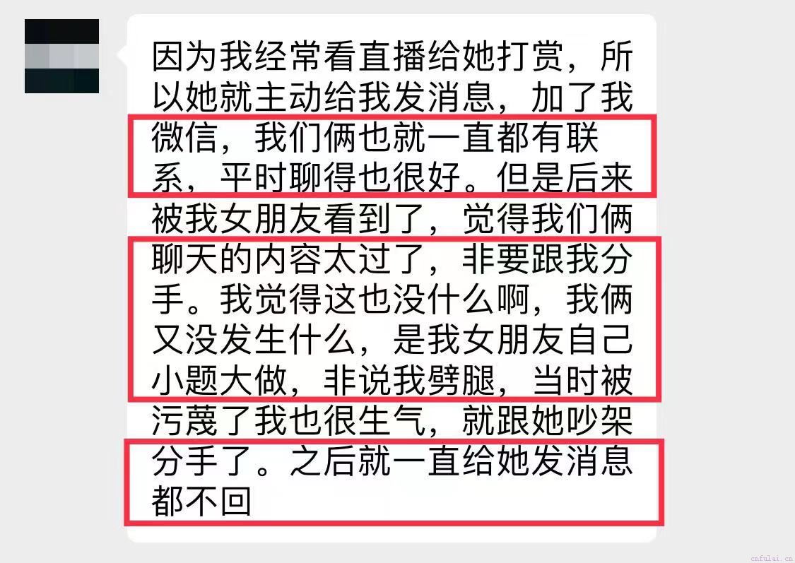 就刚刚这个案例而言,大家是不是会觉得,他们分手的直接原因,应该是因为这个男人跟女主播暧昧不清,所以他女朋友对他”劈腿”的行为感到失望,而选择了分手?