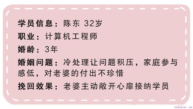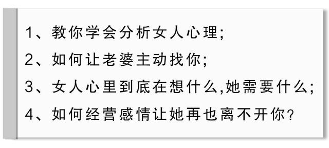 如果你也和学员陈东一样,面对老婆的执意离婚不知所措,用尽办法也改变不了她的决定,可以耐心看完这篇文章,在这篇文章里,你将会学会4点: