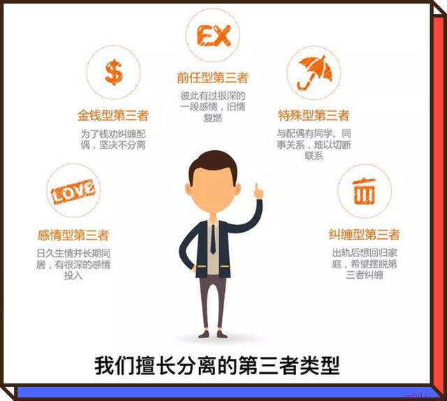 导师会根据第三者的具体情况,来判定他的出轨类型,并制定一步步的策划分离方案,间接分化瓦解他们的关系,离间第三者和他的感情,整个过程由导师操作执行,目的在于保护学员的隐私和人生安全,同时又兵不血刃的分离第三者。
