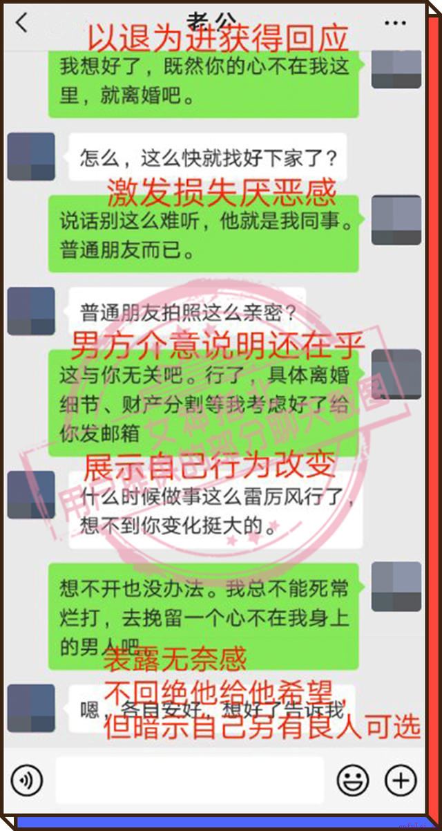 (看到这里,你可能发现了我们对问题的分析达到了细致入微的地步,并不是我们很闲,而是只有透过现象才能看到本质,只有把问题揉碎了吃透了,才能有针对性的制定最优化的方案,如果你也遇到复杂的情感难题,以点击#微信#,让导师一对一的帮你分析,最近我们还推出了三对一的服务机制,由分析师、监督师和导师三人共同帮你诊断,不存在你情急时找不到老师的状况。与其自己瞎琢磨,彻底断送一段感情,不如让我们帮你挽回真爱。)