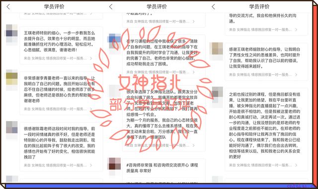 所以,当你遭遇需要挽回的状况时,你需要的是找到最适合你的老师。在此,我真诚地向你推荐我所在的团队,我可以有自信地跟你说:女神指北,可能是你在小鹿上能遇到的综合学历、知识水平素质和综合成功率较高的团队。