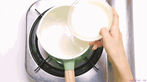 1.将淡奶油小火煮至冒泡后,要关火后再加入其他配料