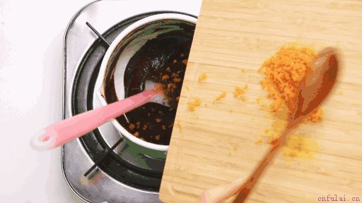 4. 锅中倒入橙皮,搅拌均匀做成巧克力酱