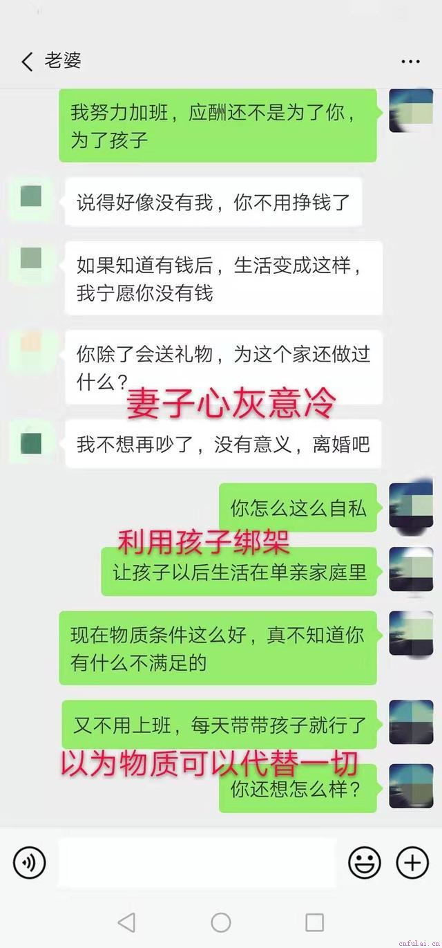 在家庭物质条件的不错下,一个女人,如果真的不是对这段婚姻感到绝望,是不会轻意提出离婚的。因为她知道自己的离婚成本远远大于男人,也担心一手带大的孩子从小生活在单亲家庭里。在这段婚姻里,妻子的内心其实是极度憋屈的,她刚开始理解他,支持他,却换来的是他越来越忙碌,让她独自承担照顾孩子。