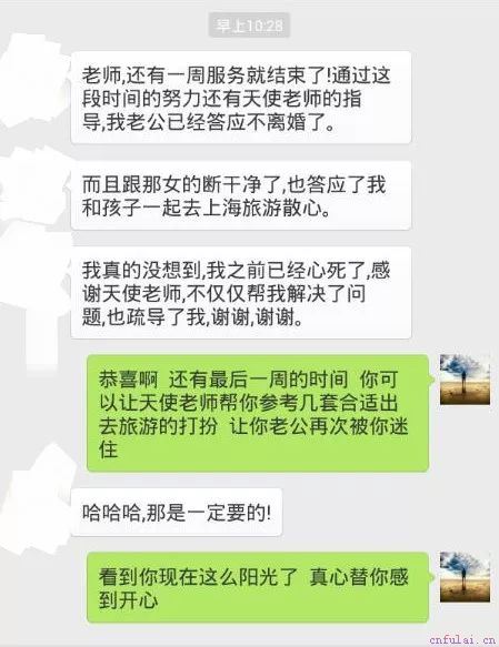 所以最好的婚姻都是‘忍’出来的,在这个世界上并没有什么天作之合的婚姻和一见钟情的爱情。所有的美满都是在经过鲜血淋漓的磨合,心如针扎的纠结,忍就是了解,是爱是包容,提升自我的同时引导对方变得更好。在天使咨询师的指导下,周依和老公已经和好了,第三者也成功分离了,两人再也没有提过离婚,反而恢复到了从前甜蜜的状态。