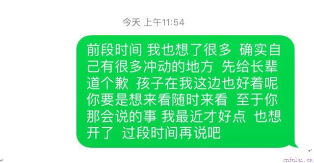 对方当晚就回了个电话,说自己也挺想孩子的,想啥时候一起出来见见聊一聊,学员没有当即打答应,只是说了周末看时间。但是对方电话里语气还是比较好的,也嘱咐了学员要把自己照顾好。