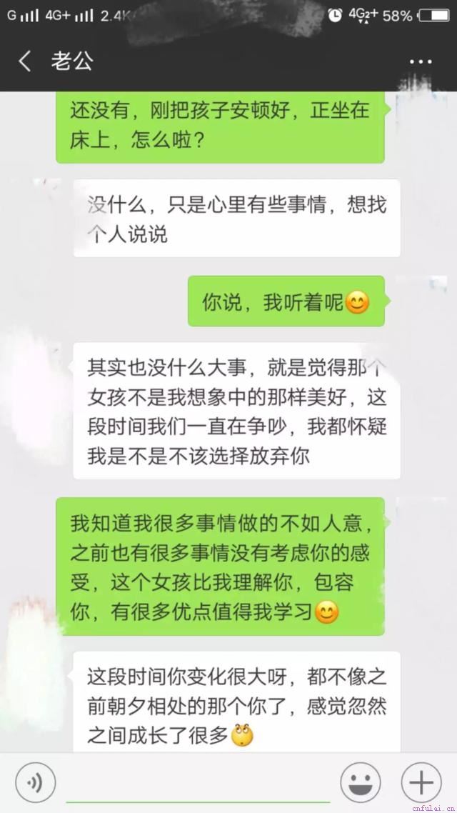 从两人的聊天记录来看,娟子老公虽然心里还是没有完全消除负面情绪,但是,离婚的念头已经打消了很多。咨询师告诉她,现在已经是很好的转变了,千万要控制好自己的情绪,不能乱了方寸。同时,适当的推进两人的关系也是必不可少的,但千万要适度。经过几天的手把手指导,娟子老公的态度有了很大的反转,渐渐开始主动嘘寒问暖,找话题。咨询师说,这是让他愧疚感重现,引导他开始拷问自己的心灵。