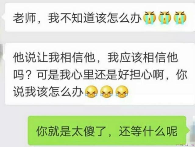 只是,这个男人不忍心伤害第三者,他不知道该怎么做。弄清楚这个问题以后,辰辰咨询师一步步指导乐乐通过微信消息引导老公妥善处理第三者问题、回归家庭。各位朋友有什么情感问题需要咨询的,可以点击我的头像,添加我的微信,点击#微信#跟我们一对一的咨询,我们会根据你和对方的不同性格和你们的现实情况进行全方位的分析解答。
