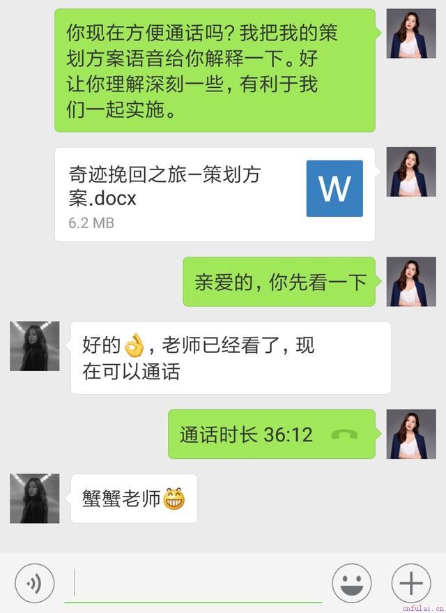 后来,魏欣开始寻找专业的情感机构帮助她解决问题,经过各方面的了解和考察,她找到了小鹿的驻情团队。一开始魏欣是和我在电话里面沟通的,魏欣很认可我对他们那段婚姻的分析和指正。为了了解的更详细,魏欣专程从成都飞到武汉,来到了我们武汉小鹿公司和我面聊。最后魏欣很有信心的选择接受我们驻情团队专业的指导和帮助。