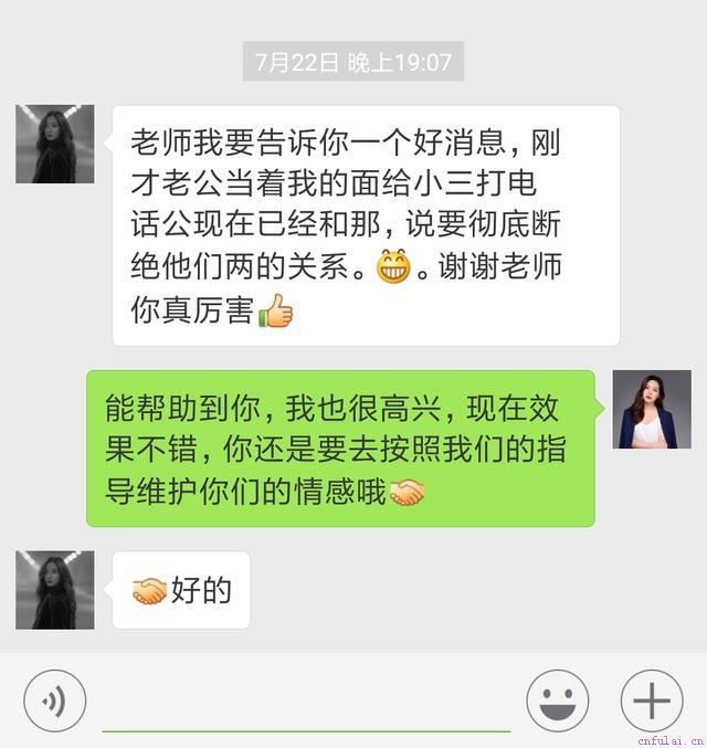 丈夫出轨怎么调节心理呢?魏欣现在成为了小鹿驻情团队的狂热粉丝,很期待自己有朝一日也能为分离第三者的事业尽一份力!她也有根据自己所学的,试着采用这套挽回黄金系统,给她的闺蜜解决问题,她反应真的有成效哦!他们老公的态度都转变了不少,感情好像开始升温了!如果你也正处于进退两难的情感困境,点击说出你的情感遭遇,送你一次价值888元的微信情感诊断,你将有机会参与每周帮助至少25人成功挽回的公开课。