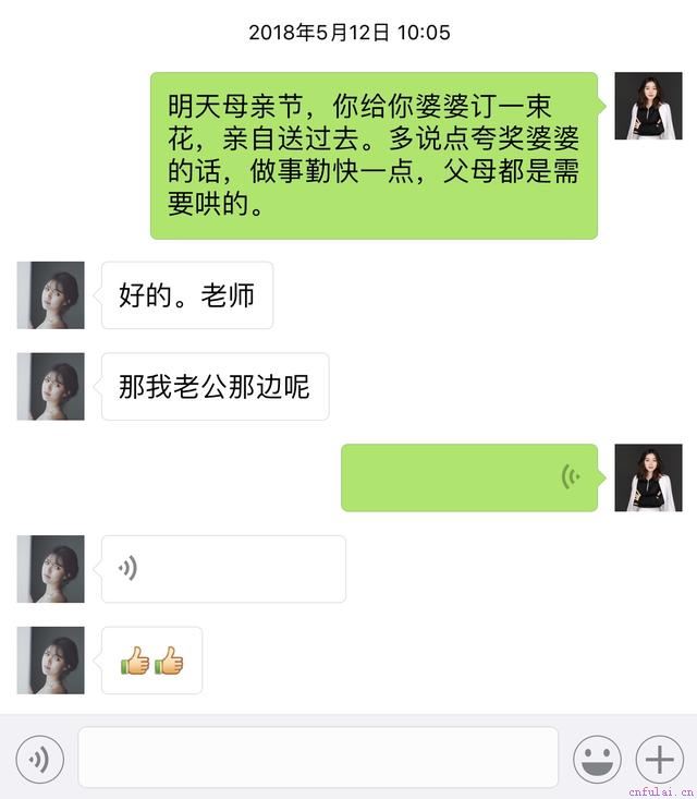 不仅如此,在母亲节当天,我们让安媛送给婆婆一束花,婆婆非常高兴,更主动叫儿子回家吃饭。安媛前期的努力和改变,莫峰也是有所感受到的,那天两个人也相处得非常好。