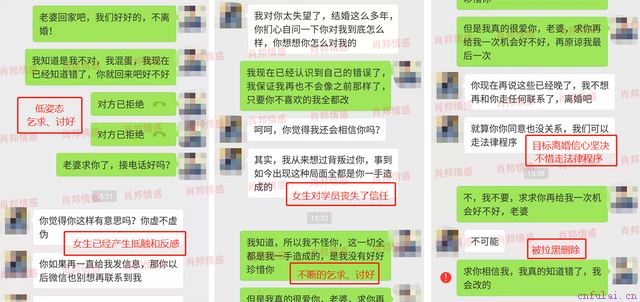 就这样一次两次我还能忍受,直到有一天,我们之间的冲突终于再一次爆发,这一次我动手打了她,她也坚持要和我离婚,第二天他就收拾了东西回到了我岳父岳母家。我一直给她发微信打电话,她的态度也是很坚决,坚持要离婚。因为我真的太爱她了,我也认识到留了我以前犯下的错误,我们天都给她打电话,发微信,甚至是以孩子生病为理由去找她,一开始他还回复我信息,但最后直接把所有联系方式都拉黑了,还说我不同意就去法院起诉我。