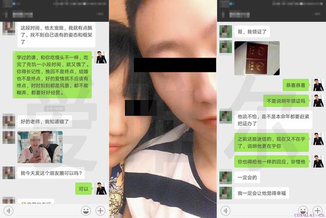 九年来我一直没有忘记我的初心,帮助失恋的人蜕变新生,重获爱情。看到学员领的一个个红本本,觉得自己的付出是值得的。
