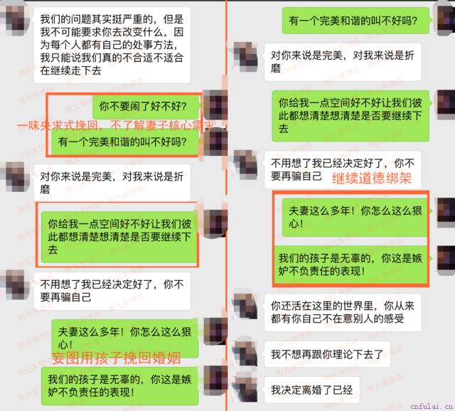 开始求救:于是在网上找到了魅元素情感的老师,加了老师的微信,我把我的情况重复了一遍,老师全面分析了我的情况之后,叫我先缓和关系,让我老婆处于一个愿意和我沟通的状态之下,再在导师的指导下采取正确的方法挽留和修复这段婚姻。