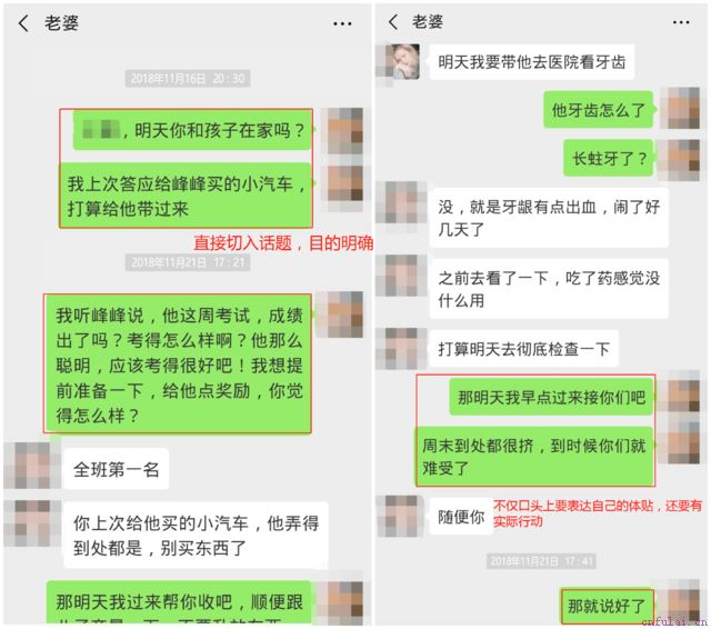 而且,在这种情况,沟通越直接越好,直接切入你想表达的话题,附带的越多反而容易直接被对方看穿出你的目的。虽然亲子联系是打开目标心门的好途径,但是这也只是表示对方在照顾孩子这方面和你达成一致意见,并不能让她和你重归于好。