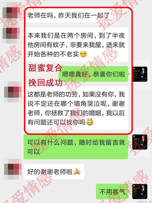 此方案为专属私人订制,盲目效仿往往适得其反,不同的人有不同的性格,挽回方案需要针对当事人的实际情况来制定。如果看文章的你想定制自己专属的挽回方案,加上导师后,把你的情况细致的给导师描述一下,我们将会第一时间为你指定私人方案,教你老公出轨怎么挽回,给感情上一个保险,让爱得偿所愿。