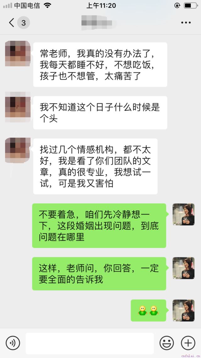 被一直信任且深爱的人背叛,是什么滋味?就像吞了一根尖锐的针,一直刺到心底。这种疼痛不是一瞬间,而是持续许久,一想起就会被狠狠的扎一下。这是学员丹丹(化名)在找我求助的时候,说起自己被丈夫背叛时的感受。语言形容出来的感觉终究是苍白的,个中酸楚痛苦,只有经历过的人才会懂。老公出轨怎么做?我每天都会接到好几起像丹丹这样的求助,她们无一不是在莫名其妙的情况下,被第三者入侵了婚姻。有点是身边的朋友,有的公司同事,有的还是虚拟世界的网友······无论从法律上,还是道德上,第三者和出轨者都理应备受谴责。可是对于深受其害的原配来说,谴责就能解决问题,抚平伤痕吗?显然并不能!解铃还须系铃人,想要真正能解决问题,就得从源头着手。好在丹丹及时找到了我,在我们共同的努力下,男人主动甩掉了第三者,向委托人道歉并写下具有法律效应的保证书,双方的关系也得到修复和提升。你好,我是常在心团队的创始人常在心老师,比男人更懂男人。我最擅长两件事:分离第三者和修复婚姻。如果你也在婚姻中遇到问题,不知道该怎么解决,我会根据你的具体情况和问题,用我专业的咨询经验,来帮助你解答,给予你建议。学习更多的婚姻情感知识,掌握婚姻中解决问题的技能。现在,我们就来复盘一下丹丹是如何重获幸福,重新掌控婚姻的。