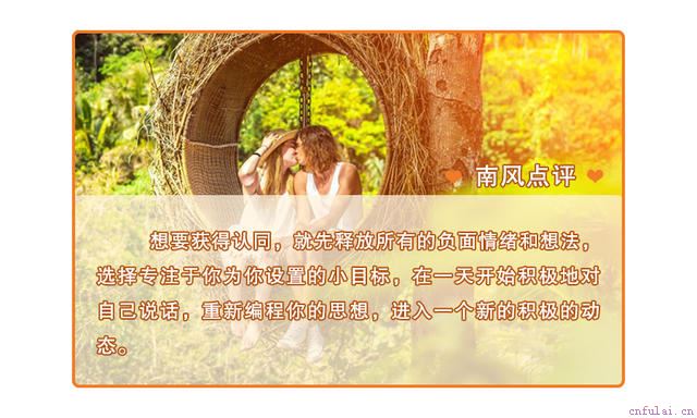 爱情之中只要找到了彼此的认同感,那么爱情和婚姻才可以做到有滋有味的细水长流,当你们的感情之中不再具备认同感的时候,任何一点缺点都有可能被无限的放大,成为你们决裂的导火索。