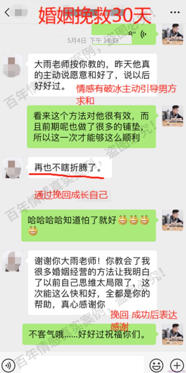 在感情的世界里每个人都会遇到自己解决不了的问题,而感受到难爱和失望、甚至觉得无力感、这些都是很正常的,因为当局着迷,这个时候你必须要有一个局外人,能给你专业的建议和指导。我接触过很多婚姻破裂的家庭,幸福的家庭千篇一律,不幸福的家庭各不相同,其实男人并不是真的想要离婚,而是希望你能有所转变,只要你找准了方法用对了时机挽回将变得简单。百年导师是专业从事婚姻修复的专家,遇到情感问题来找百年情感,一切都会变得容易——专业挽回幸福百年。以上方案为专属私人定制,请勿盲目效仿,刚我们的咨询都是来自于国内外权威心理学机构的优秀导师,专业性和实战经验都非常丰富,而每一位学员的挽回操作手法都是不同的,正因为如此我们才会对待每一位学员200%的用心,如果你此刻正面对着难以解决的情感问题,想知道如何挽回婚姻技巧?我们会帮你治愈情伤,排忧解难手把手教你挽回让你的爱能得偿所愿。其实你离挽回成功只差一步,只要坚持就能看到胜利,我是百年情感大雨老师,你身边的挽回专家,让我们专业挽回,幸福百年!