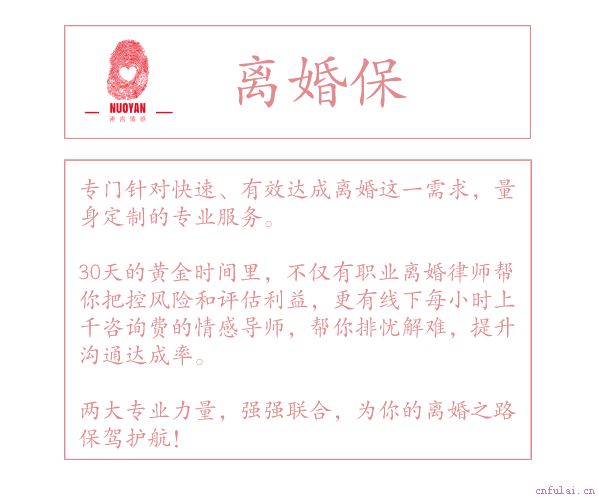 结果这个男人在法庭上扮演深情好男人的模样,诉说这几年幸福点点滴滴,说到动情处还流泪了,王双真是哭笑不得,对这段婚姻的仓促后悔不已。结果就是,没离成。王双被折腾的身心疲惫也没尝到甜头,迷茫的她无意中在网上看到了诺言情感的文章,看到了我们有离婚保的服务,希望我们可以帮助她,快速结束婚姻。