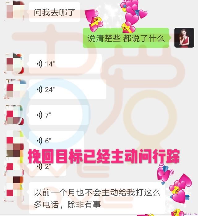 能否达成有效的沟通是挽回中的关键,很多学员都是因为不懂得如何沟通,让自己做出的努力功亏一篑,甚至让对方产生更深的误解,所以如何与对方建立有效良性的沟通模式,是导师#微信#全程跟踪指导过程中的重中之重。