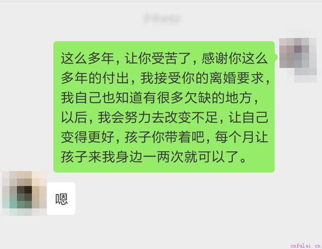 很多兄弟都知道,一个女人爱你,会百般的对你好,而当对你有了看法之后,无论你做什么都是热脸贴冷屁股。王豪采用了错误的挽回方法,导致对方已经产生了厌烦的感觉。导师指导王豪要学会隐藏需求,以退为进。首先,导师让王豪给老婆编辑了一条信息,大致意思是:感谢你这么多年的付出,我接受你的离婚要求,自己有很多欠缺的地方,我会努力让自己变得更好,孩子你带着吧,每个月让孩子来我这里一两次就可以了。对方收到好,回复了一个嗯字。