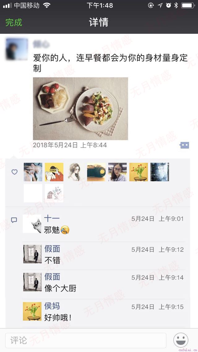 她给我的朋友圈点赞了。也是我第一次把我为她做的早餐发圈,自然是惹来一片好评。当天我就在微信上找了她,虽然她并不是很愉快,但好在我们有了沟通,就不再是僵持的状态。