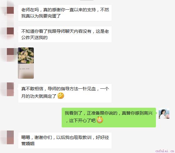 这一阶段,主要是在之前的基础上,教导海燕一些关于两性相处的方法,如何使关系更加亲密,从而将感情浓度维持在极高水平。另外也要教海燕学会出轨修复术以及情感挽回后的修复技巧,能很好的揭开老公出轨造成海燕的心结,也能修复海燕错误的做法给老公带来的心里阴影。通过一步步的指导和一对一的教学,海燕成功挽救了她的婚姻,老公也离开了第三者回归家庭。