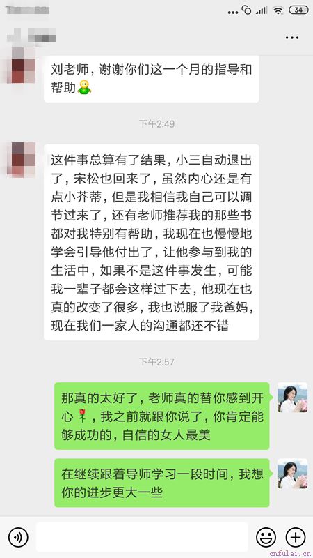 夫妻间真正的相处需要智慧,而智慧是需要持续学习和不断理解运用的。当你真正的掌握了夫妻相处之道,就算以后没有了导师,出现了问题你也能应对自如。授人以鱼不如授人以渔,这才是原配维权专家服务最重要的宗旨。