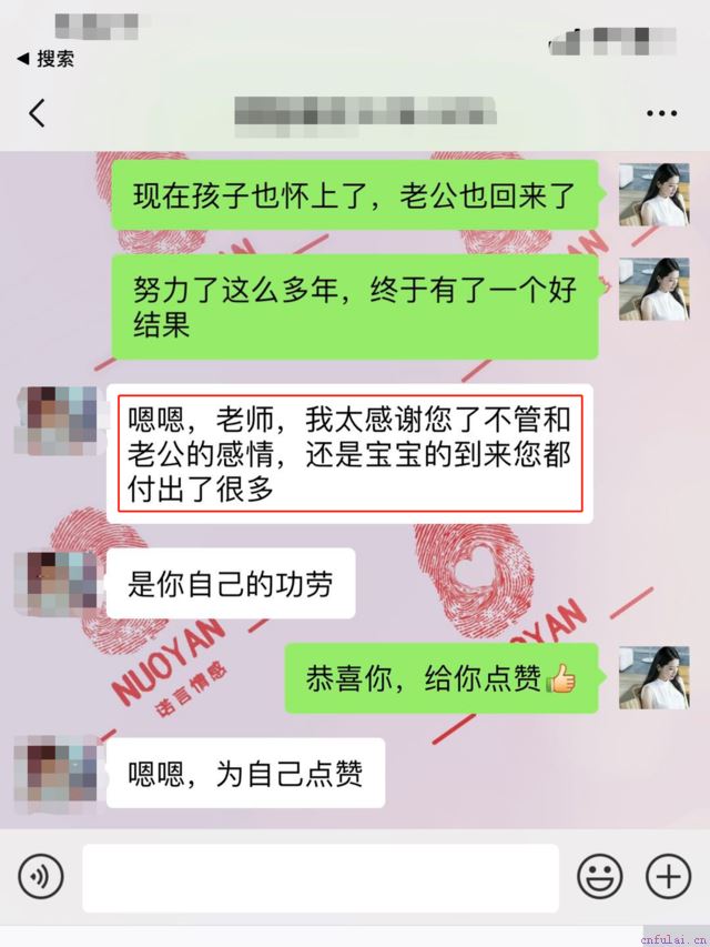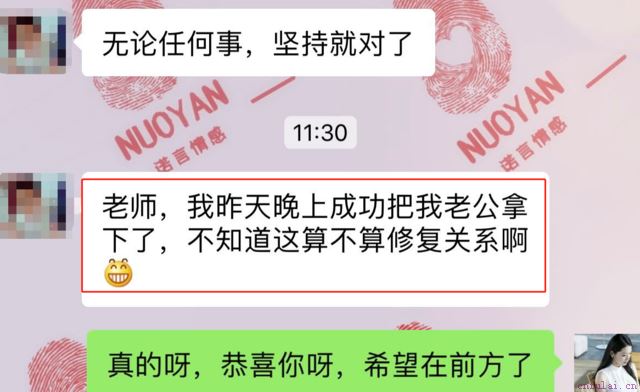邹晨特别宠爱自己的丈夫,像一个妈妈一样照顾丈夫的生活起居。且她更喜欢事事插手,这让丈夫觉得自己非常不被尊重和信任,伤害了他的自尊心。同时她对丈夫的需求感特别强烈,希望丈夫在家随时待命,陪伴自己。这让丈夫感觉窒息,所以他想要逃离。一开始坚信自己是无辜的邹晨,在听完我的分析后,泪崩了。她终于明白,婚姻中出现问题,不能把责任都推卸给身边的人,因而从现在开始,要配合我的指导,一步一步地纠正自己的错误。任何婚姻都不会一帆风顺,但是必要气馁,专业靠谱的情感机构总有办法为你化险为夷,今天别再傻傻的坐以待毙了,点击#微信#添加导师,相信你也能像诺言情感的其他学员一样,置之死地而后生,不仅能够挽回丈夫,保卫婚姻,还能让自己从此成为丈夫欲罢不能的女人。