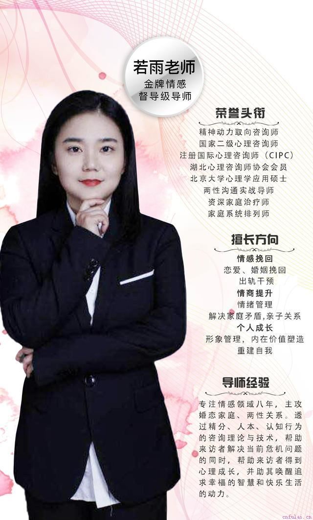 所以,最好的方式就是夫妻一起来找专业人士,由专业人士给他们提供一个空间,可以放下他们无法承载的情绪,从这个专业人士提供的安全空间里,他们首先能放下情绪,然后才能重新解读对方的行为,妻子不会把丈夫看成一个自私的混蛋,而是一个自责到无地自容的小孩;丈夫也不会把妻子妖魔化到一个疯狂的指责者,而是一个恐惧到不能自处的小孩,双方可以软化自己的立场,重新看到对方的原型,才能真正的交心。没有追不回来的爱,只有没有方向、没有思路的焦头烂额,如果你不想放弃这段感情,想知道老公出轨怎么办,想要回到最初的热恋,现在添加,不仅会获得一次免费咨询的机会导师还会教你如何优雅、体面地挽回他!