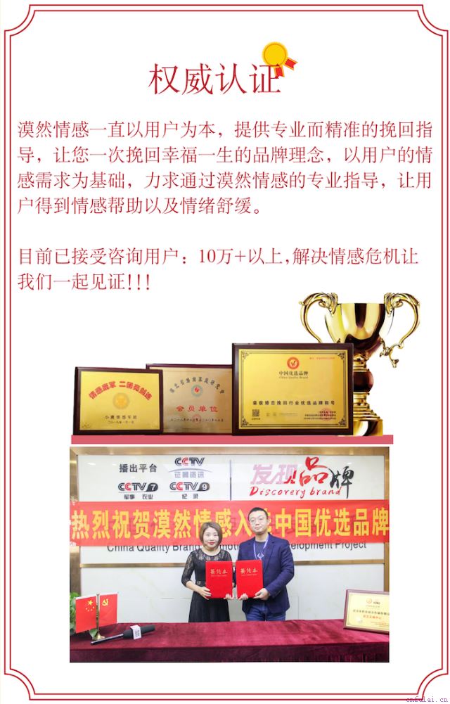 关于漠然情感也有好几个月了,每天听直播看老师的文章也常常看到朋友圈里的成功案例,于是我放心的将我对婚姻报有的一丝幻想托付给了老师。