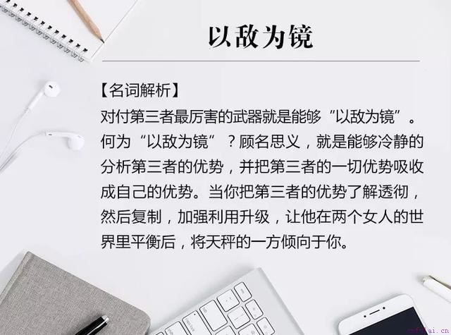 你与王强在一起这么多年,感情深厚,有时候稍微退后一点,换位思考,也许结果就不一样了。而对付第三者最好的技巧是——以敌为镜。