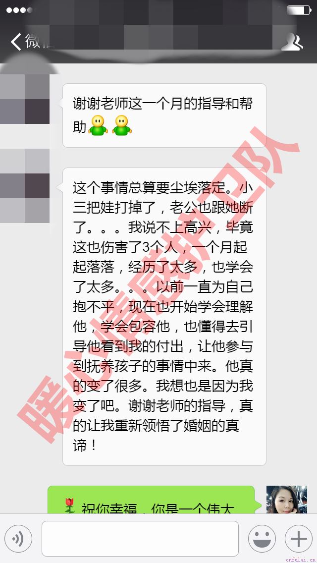 婚姻的主要支撑,从来不是撒泼或忍耐。感情是从什么时候开始变质的呢?从他越来越晚归的身影;从他越来越敷衍的话语;从他越来越冷淡的神情;从他曾对你激情四射,如今却冷漠如冰;······有时候你觉得你并没有做错什么,可不知道为什么两个人的相处越来越累,你不知道他的心里在想什么,也不知道他的心是否还在你这里······直到另一个女人逐渐出现在你们的感情世界里,你才知道,原来在他对你冷淡的时候,却与另一个女人打得火热。试问出轨的婚姻能撑多久,该如何处理出轨的婚姻?有没有想过,在你们的婚姻中,始终有另外一个女人,消费了你的丈夫原本属于你的时间、金钱和性,再把用剩下的男人丢给你,徒留你妻子的虚名,你真的可以一直忍受下去吗? 很多人说,漫长的婚姻里只有两个主角,面对面的时间久了,当初激情澎湃的爱恋被消磨掉,只剩下日复一日的平淡无奇,而男人都有猎奇心理,喜欢新鲜刺激的东西,等他玩够了,过瘾了,就会回来的!女人一定要忍耐,总有一天小三会知难而退! 可是,真的只是这样吗? 大家好,我是小鹿暖心团队咨询师。我懂你的悲伤、愤怒还有深深的不甘心!不要难受,深呼吸,打不倒你的终会使你更坚强!但今晚,我并不是来给大家灌鸡汤的,我知道看到这里,你更迫切的是想要解决的办法:如何让第三者滚出你的婚姻!如何夺回属于你原配的权利!擦干泪,平复一下糟糕的心情,请带着你的决心,认真的看下面的内容! 如果你遭遇了第三者插足、老公出轨等婚姻问题;如果你还在失败的婚姻苦苦挣扎;如果你想要摆脱这种感情上的折磨和痛苦,不要犹豫立即点击#微信#,添加我的助理,倾诉你的困扰和问题,我们会全力帮助你解决婚姻中的各种难题! 案例回顾: 淑芸(化名)和王强(化名)是自由恋爱结婚,认识了7年,结婚4年,有一个孩子。两人白手起家,从当初的一无所有,逐渐奋斗到如今的小康生活。当初的那种辛劳和汗水没有经历过的人,是很难体会的! 当初,在王强家境贫寒的时候,淑芸忍受着父母的阻挠,义无反顾的跟王强结婚。 嫁给王强后,不仅努力工作,还兼职另外一份工,生活过得特别辛苦。而淑芸的婆婆不仅不能体谅小两口,反而总是找淑芸的茬,婆媳关系一度恶化。好在王强明事理,所以淑芸在婆婆那里受的委屈,都被王强的爱给暖化了。淑芸忍气吞声不与婆婆计较,努力经营和改善与婆婆的关系。 终于随着孩子的出生,婆婆的态度总算转变,开始心疼淑芸,并终于学会了女人善待女人,为儿媳妇着想。而王强也在努力的创业,打拼自己的小门店,并且生意越做越好。没过多久,两人就在城里买了房。 两人婚后的生活开始迈向安稳与和谐,苦尽甘来后,淑芸感到异常幸福和满足。她觉得老天总算没有亏待她,而与自己父母的隔阂也随着好日子的到来,逐渐消除了。然而这样的日子没过多久,淑芸愕然发现了一件晴天霹雳般的事情——王强出轨了!并且是在他们结婚的第二年,孩子刚出生不久的时候!得知这个消息的时候,淑芸怎么也不敢相信王强会在外面养小三。可是手机上的信息,却是那么的扎眼: