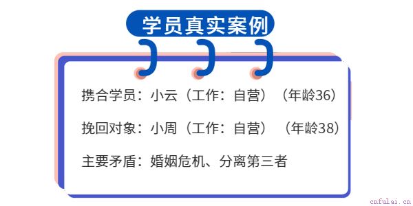 感情的挽回是找寻最初的自己,找到了自己,才能挽回那个对的他。今天的文章,我们一起解析携合情感乔拉老师的以为学员的真实挽回案例。希望在看到这个文章的你能重新树立信心,把握住自己的人生。如果你的婚姻中也出现危机,存在第三者问题、婚姻破裂、婆媳矛盾及亲子关系的问题,可以添加到我们专业的咨询。获取微信后在微信中搜索,成功添加到我们咨询师的学员可以免费获得单次一对一的情感分析。