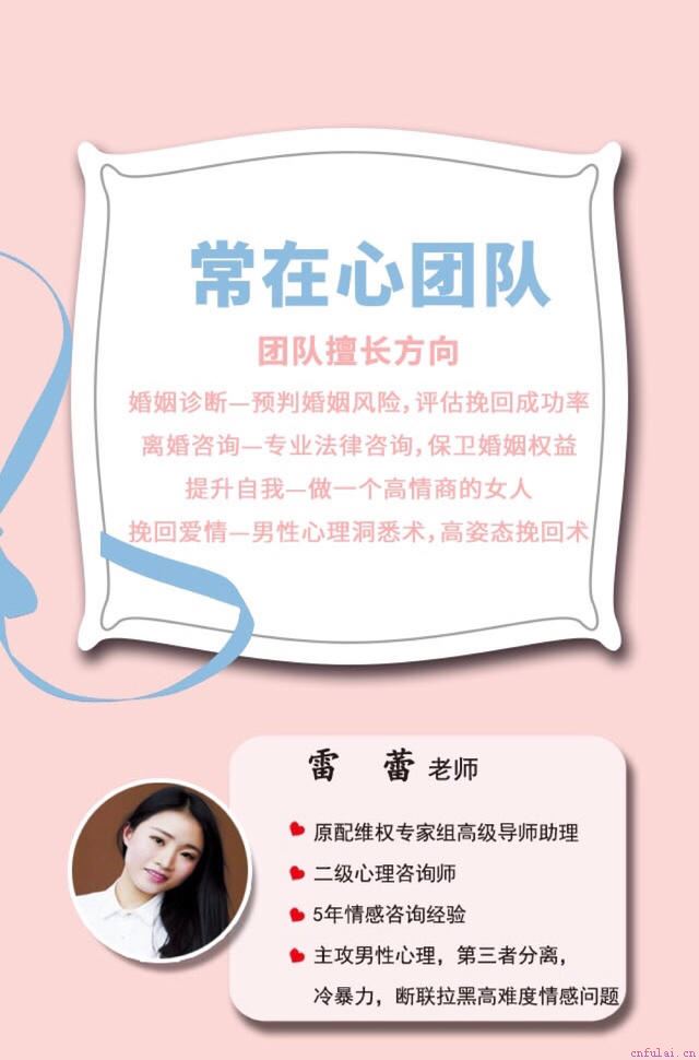 大家好,我是常在心团队的雷蕾老师。我们团队扎根于情感行业多年,擅长以男性心理分析感情问题,比男人更懂男人。
