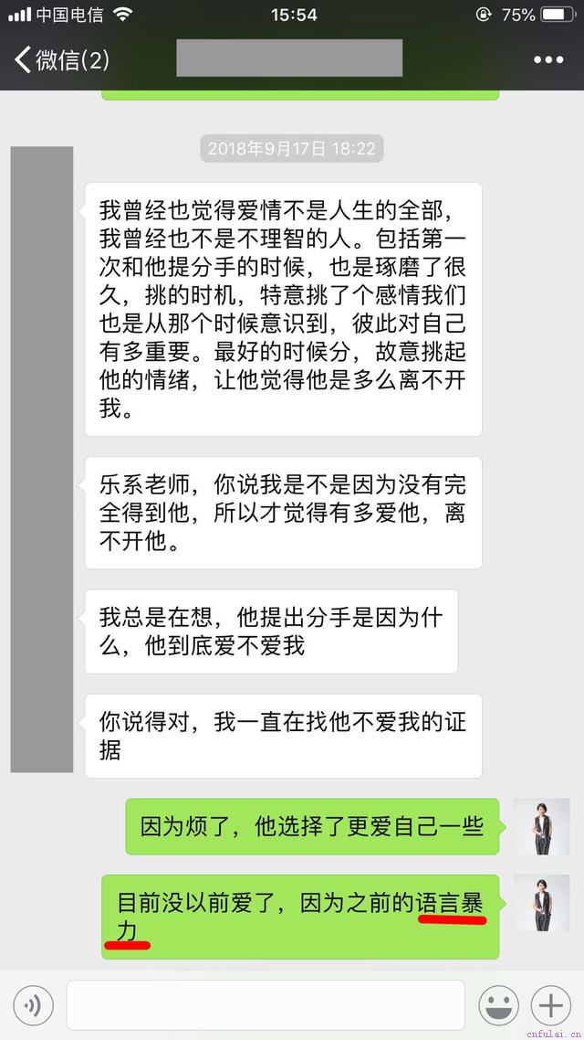 果不其然。当我第二天询问小美时,小美告诉我说,分手后那天,男友在车里嚎啕大哭。因为内心的愧疚,所以男友才会决定离开她!希望不耽误,不打扰,做彼此的陌生人!在获悉男友对小美依旧存在感情后。我便指导小美跟男友在微信上进行简单的缓和关系。