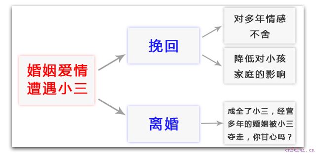 最怕的是第三类和第四类。第三类和第四类,都以优雅、温柔为表征。第三类想要人,第四类想要人和钱。想要人的第三者,以规则、道德、耐心、自身素养为武器来应对。想要钱的第三者,以法律为武器来对付。
