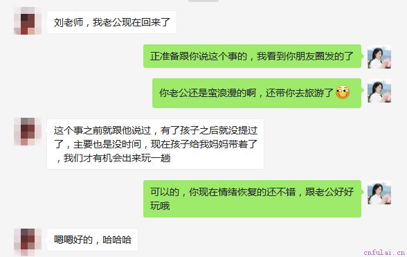 今天恰好收到了一位叫齐铭(化名)的用户向我发来的好消息,她和正在闹离婚的老公和好了!