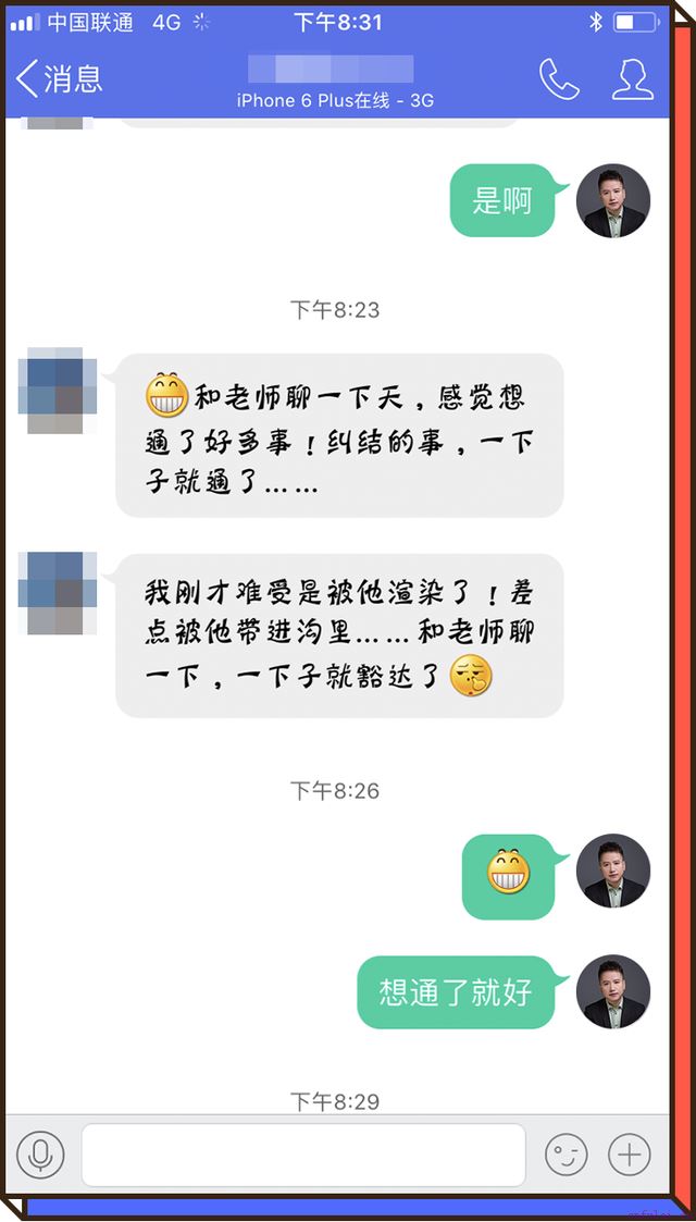 当她用学来的知识再次与丈夫沟通时,发现丈夫回复的字数明显增多,由冷漠变得热情了。后来,小阳持续以我教她的方式与丈夫沟通,丈夫开始主动回家吃饭,并且回家的频率开始增加了。
