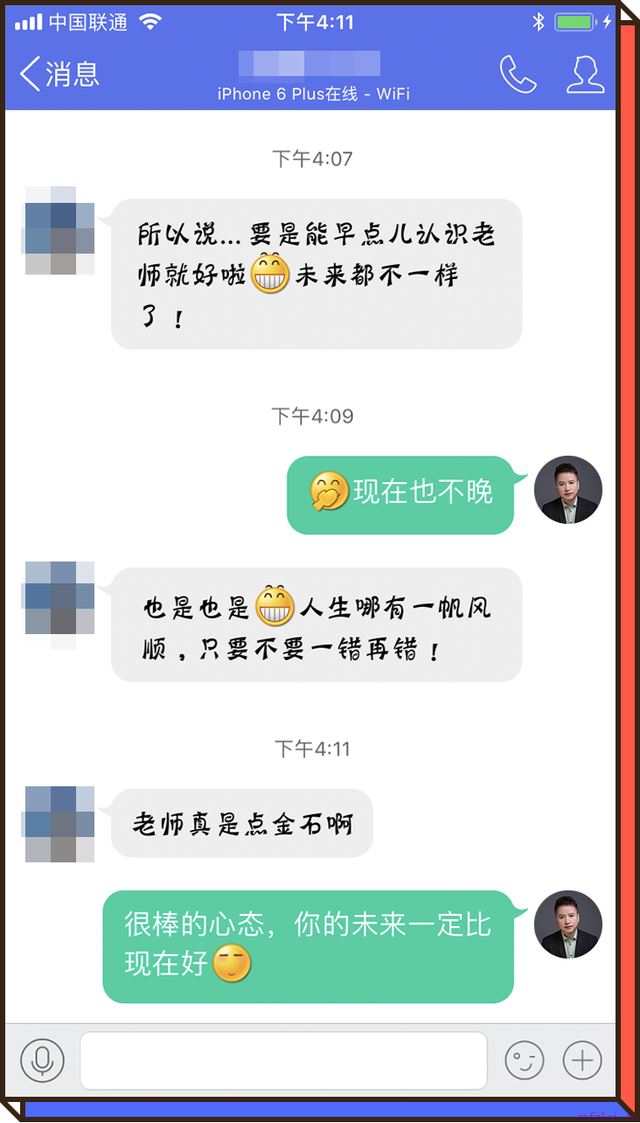后来,她又去摄影店拍了一套优雅的写真,挑选其中一张照片用作了微信头像。当她再尝试联系丈夫时,以前从不回复微信的丈夫,居然很快回复了她。