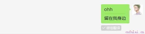 点击微信翻译以后,可以看见“留在我身边”的小情话。
