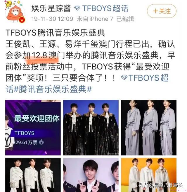 去年12月8日,四字跟三字二字一起去澳门参加腾讯音乐娱乐盛典