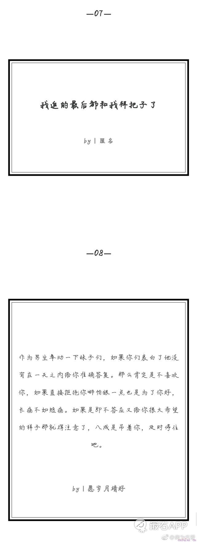 女生追男生,大概就是这样吧恋爱 就晚那么一点点,我们的命运就会截然不同。就晚那么一点点,我们也许就会懂得彼此的好。就晚那么一点点,我们也许就真的可以白了头。 你都如何回忆我,是带着笑还是沉默。特别害怕夜深人静的时候想起你,因为所有的坚强都会崩塌,有时候也会哭得像个孩子,你却没机会看到。希望你过得好。 未经允许不得转载:234222.xyz » 女生追男生,大概就是这样吧标签女生男生