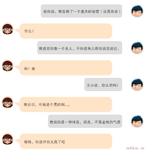 引起女生的好奇时,你抛出一个段子,女生自然会被你逗得开心。同时模仿女生语气,可以迅速调动女生情绪。你学女生行为或者语气,很容易让她们引起他们的情绪,进行适时关系升级。