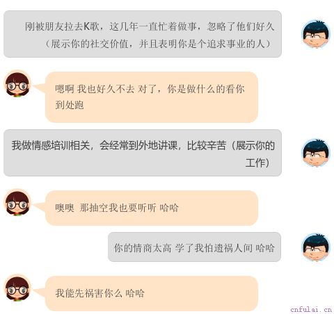 如何跟女孩聊天?比如:这里面哥提醒大家一句话,恋爱的有效捷径是复制别人成功的经验和方法,而不是自己去尝试撞得头破血流,最后时间浪费了,心累了,钱花了,还没有结果。贪多嚼不烂,今天就暂时给大家分享这些技巧,但是,你现在应该知道了,聊天是需要学习的,现在,请发自内心的去思考,然后用行动告诉面哥,你想学习这个聊天技能吗?教你通过聊天找到女朋友,从此再也不做买单侠,如果你也想要学习,那面哥在等你。