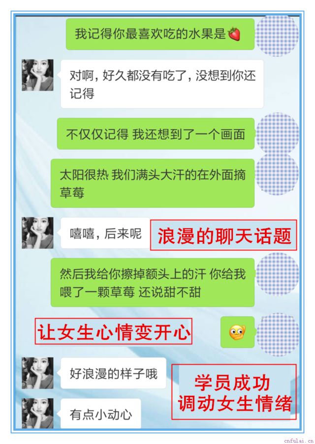 导师先教学员开启浪漫的话题,让女生的心情变得开心起来,然后再描述浪漫的画面,给女生带来浪漫的感觉,这样就可以跟女生越聊越亲密。不同类型的女生,导师都会帮助学员安排不同的浪漫话题,学员不会回复的时候,导师都可以1对1指导他回复女生,这样就能和女生进行浪漫的聊天,和女生培养感情。同时,学员也能提升自己的聊天水平,和女生拉近关系。学员和相亲对象都能聊的那么好,那你肯定也能达到他这样的效果。点击#微信#添加导师为好友,咨询我们一对一相亲聊天的服务,然后开启导师1V1聊天指导,我希望下一个找到对象的人就是你。