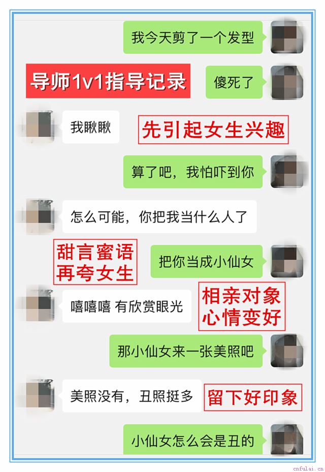 跟相亲对象微信聊什么?只要你肯下定决心学习,哪怕你不高不帅,经济能力一般,照样也没问题,我们所有的学员,都是从零开始学习,只要你配合导师,就能达到你想要的效果。◆第一:你要全程配合导师的安排,我们会根据你的情况,和女生的性格,来安排合适的聊天话题,手把手教你回复女生的信息,一对一指导你聊天。在聊天的过程中,遇到问题,导师也会快速帮助你解决。◆第二:导师会帮你安排课程进行学习,先提升你的聊天水平,然后再提升幽默感,情商,和女生相处的经验,彻底改变自己身上的问题,让女生对你产生感情,慢慢喜欢上你。