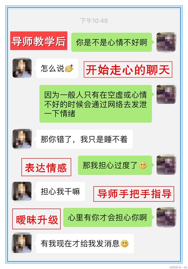 走心的聊天,就是和女生聊跟感情有关的话题,聊了感情之后,女生肯定就会对你也产生感情。学员和相亲对象聊了走心的话题之后,关系也变得暧昧了,这就是女生愿意接受学员的表现。接下来只要把握好机会,和女生聊天的时候不要犯错误,多给女生留下好的印象,那学员就可以把女生追到手了。这期间导师也会重点教学员,让学员的聊天水平得到提升,这样才能追到相亲对象。兄弟,你能从开头一直看到这里,那么风度导师相信,你肯定是想要快速改变现状,快速提升自己的聊天水平,追到相亲对象。